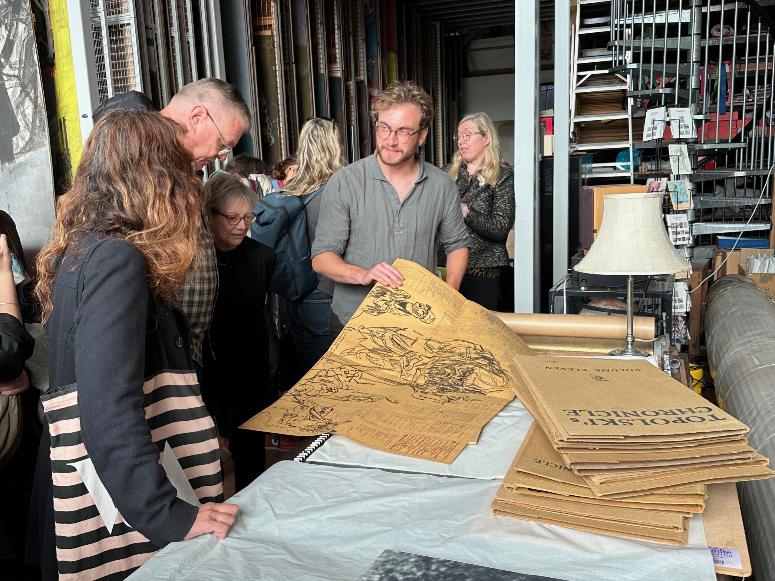 The venue, Topolski Studio, couldn’t have been more fitting. Legendary painter and reportage artist Feliks Topolski once worked in this very space and regularly hosted drawings sessions for students. Today, his grandson Lucien Topolski (see photo above) continues to preserve and promote his legacy.