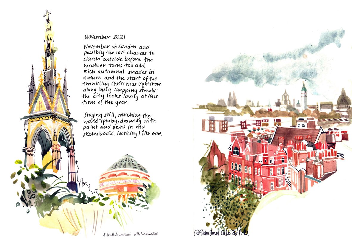 Artist and urban sketcher Lis Watkins firstly drew plants in her back garden in the early days of the coronavirus pandemic lockdown. Then, as the restrictions eased, she hesitantly moved to local parks and gardens. As rules changed again, she took her sketchbook slightly further afield to places in South East London.