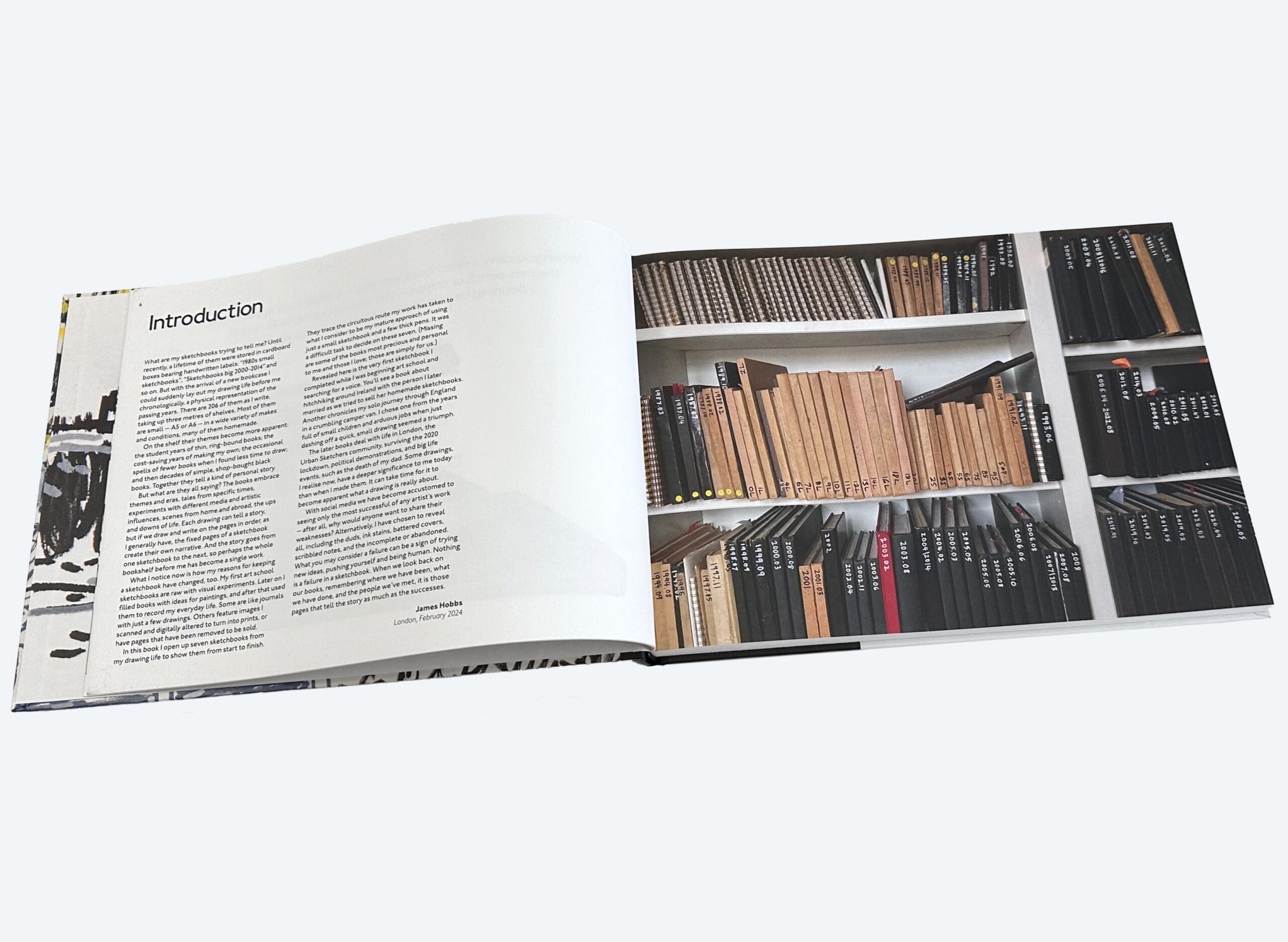 Have had a quick look at an advance copy of Sketchbook Reveal and I’m in awe at what I’ve seen. James Hobbs and Sketcher Press have done us a great favour in producing such a candid look at a sizeable body of work from someone who is amongst the most thought-provoking members of our sketching fraternity. By reproducing several whole sketchbooks in miniature, the book has a cinematic quality, a stop-frame glimpse of Hobbs and his innermost creative impulses. Punctuated with selected spreads at full-scale and short explanatory texts, Sketchbook Reveal places primacy on the sketchbook as an evolving artefact, imparting a sense of journey rendered in image and text with vitality, honesty, and artistry.